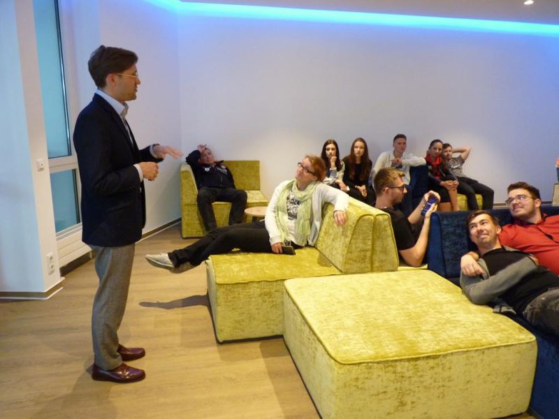 - Vortrag zum Thema Gründerkultur (Herr Sobe, Geschäftsführer des BICs) und Vorstellung eines Beispiels aus der Praxis (Frau Halama, Gründerin und Designerin)